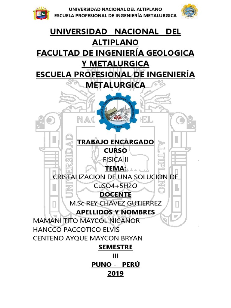 hidratado (CuSO3+ 5H2O) 17 de abril del presente año.