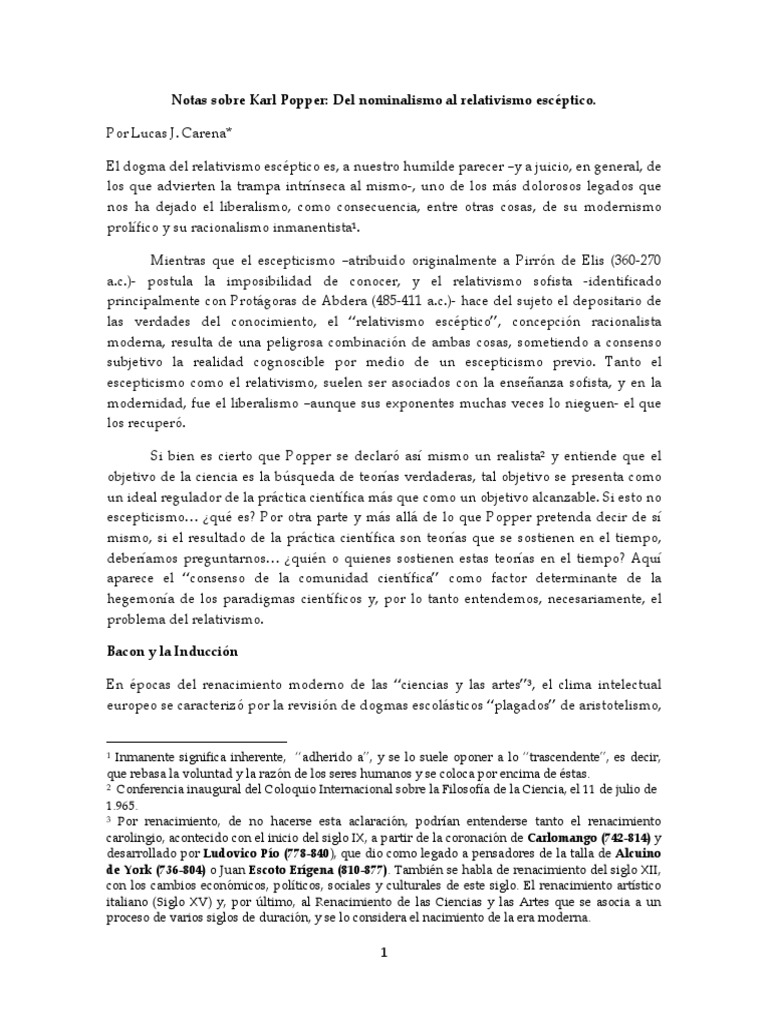 Notas sobre Karl Popper: Del nominalismo al relativismo escéptico.