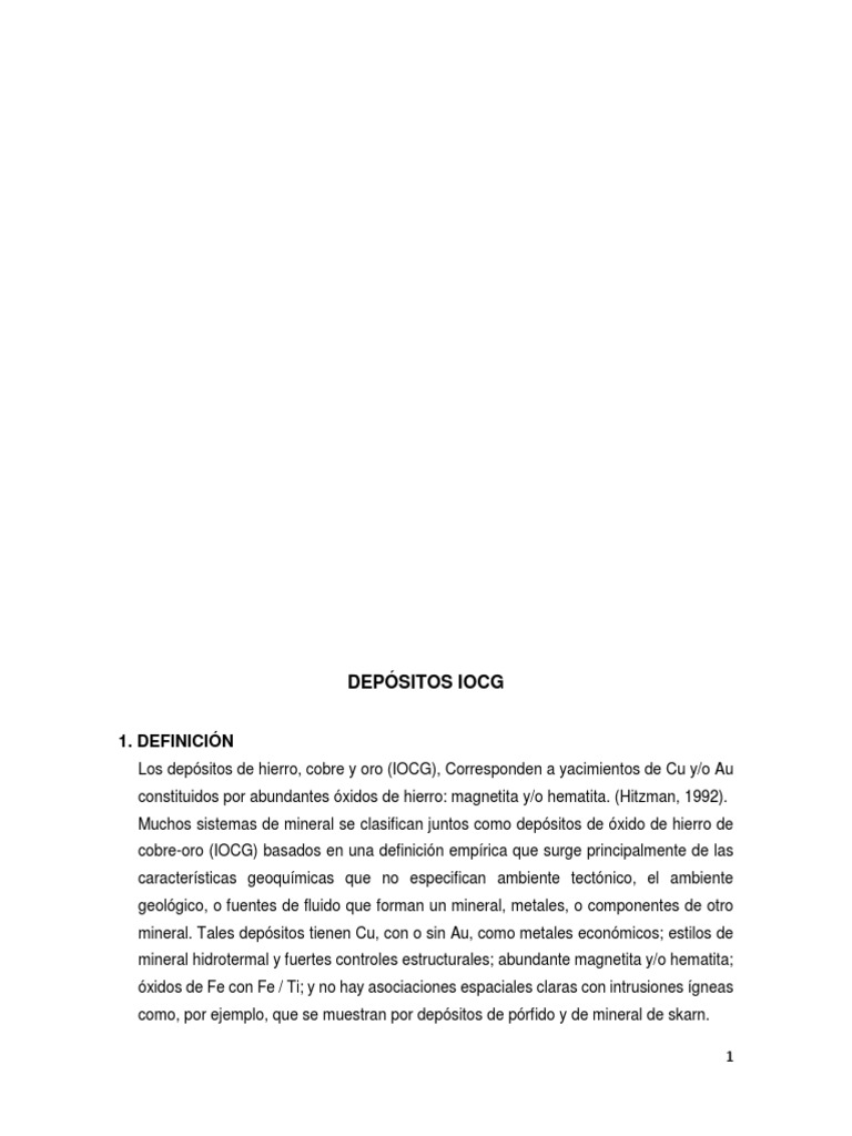 Los depósitos de hierro, cobre y oro (IOCG), Corresponden a yacimientos de Cu y/o Au