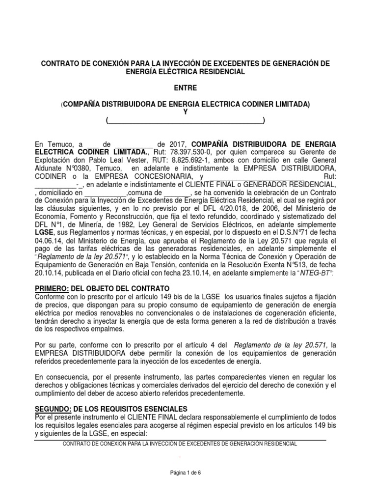 CONTRATO DE CONEXIÓN PARA LA INYECCIÓN DE EXCEDENTES DE GENERACIÓN RESIDENCIAL