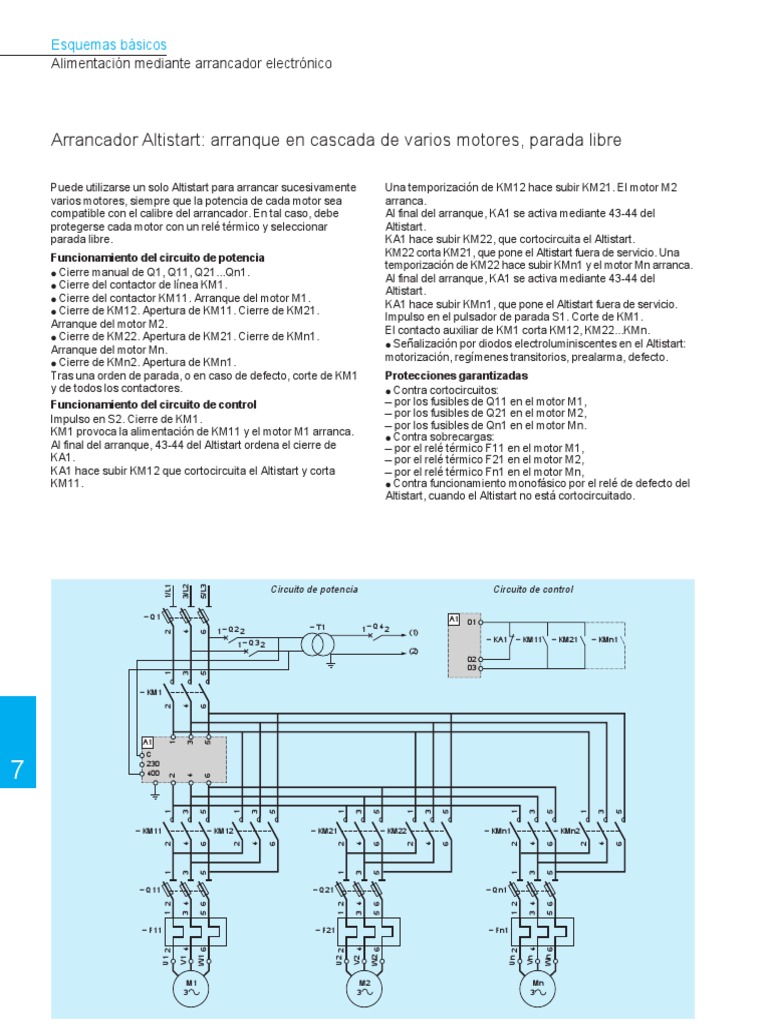 Funcionamiento del circuito de potencia KM22 corta KM21, que pone el Altistart fuera de servicio. Una