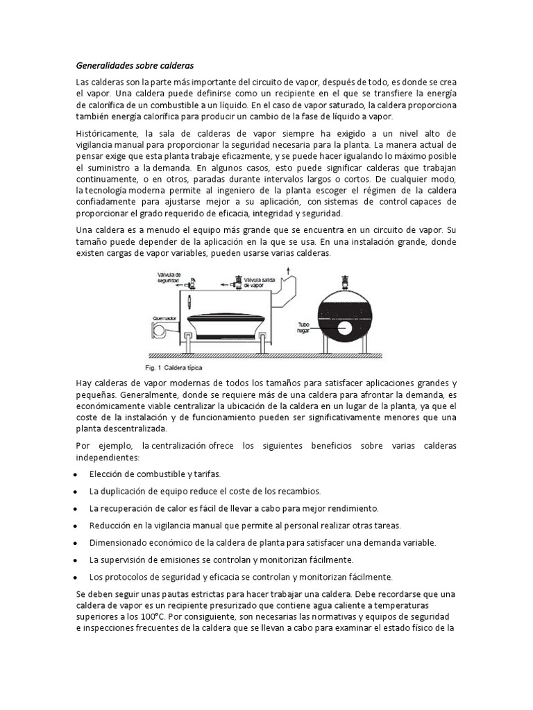 caldera. El asunto de seguridad de la caldera se examinará más detalladamente en una sección