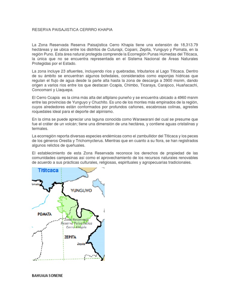 hectáreas y se ubica entre los distritos de Cuturapi, Copani, Zepita, Yunguyo y Pomata, en la