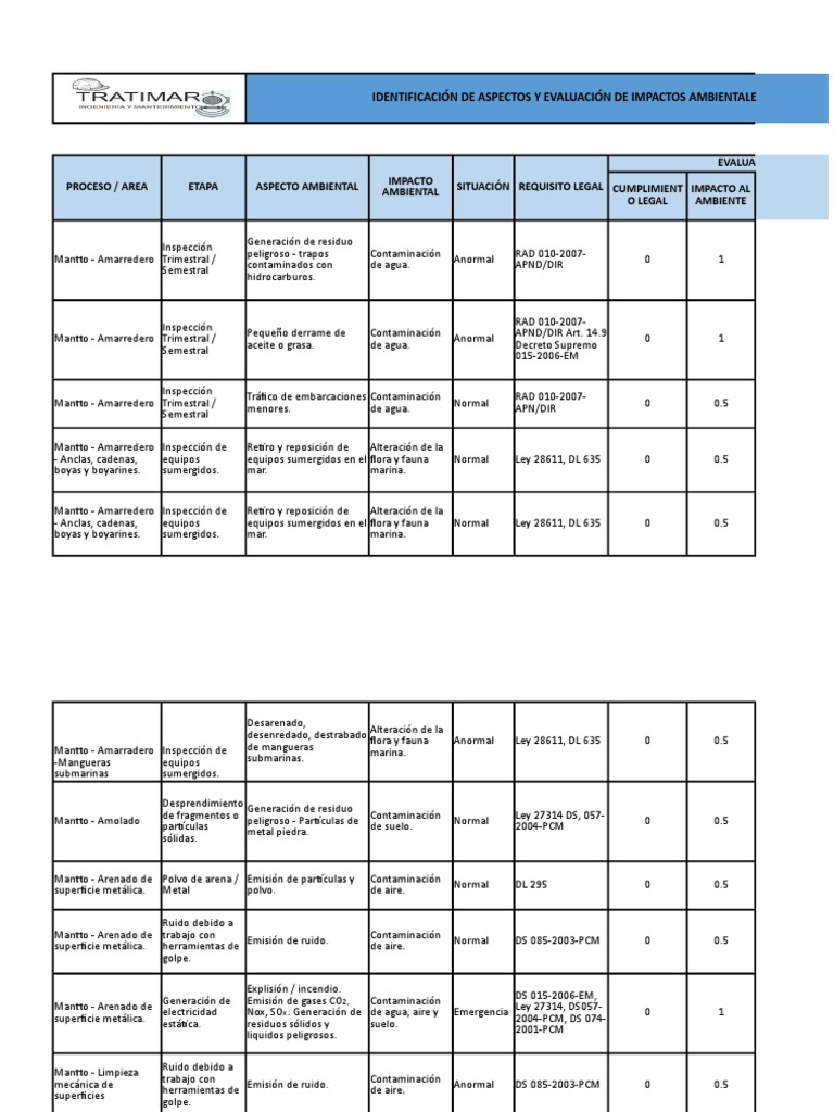 - Anclas, cadenas, equipos equipos sumergidos en el flora y fauna Normal Ley 28611, DL 635 0 0.5