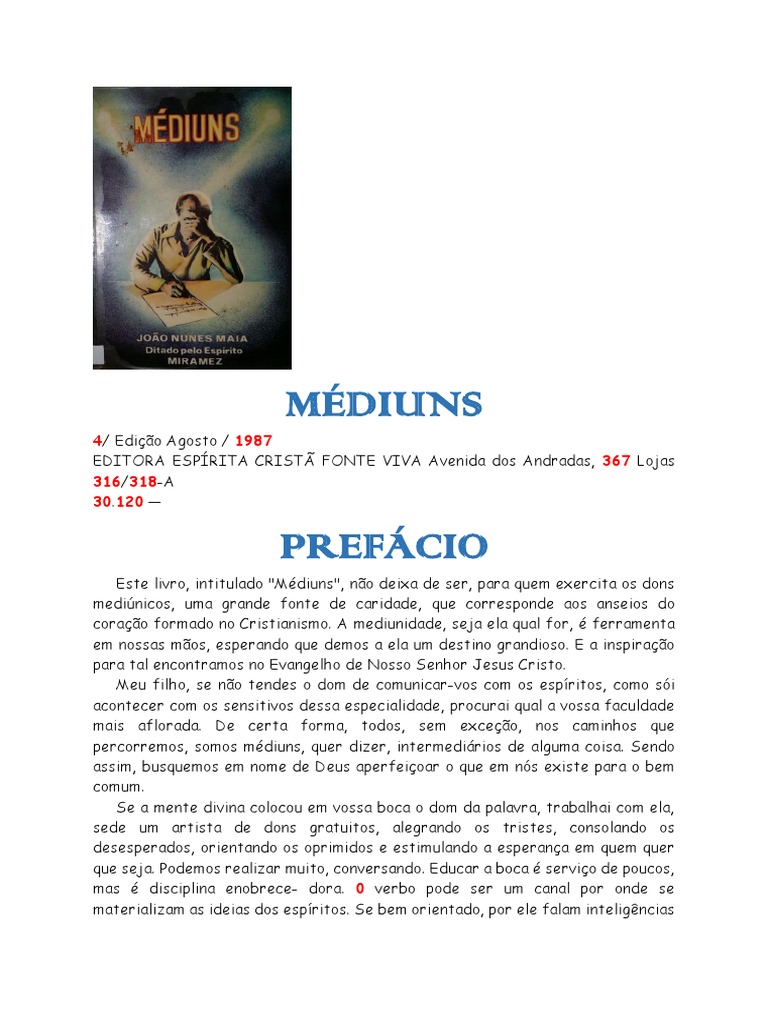 minha intenção é que todos os médiuns leiam estas páginas, sem que o coração