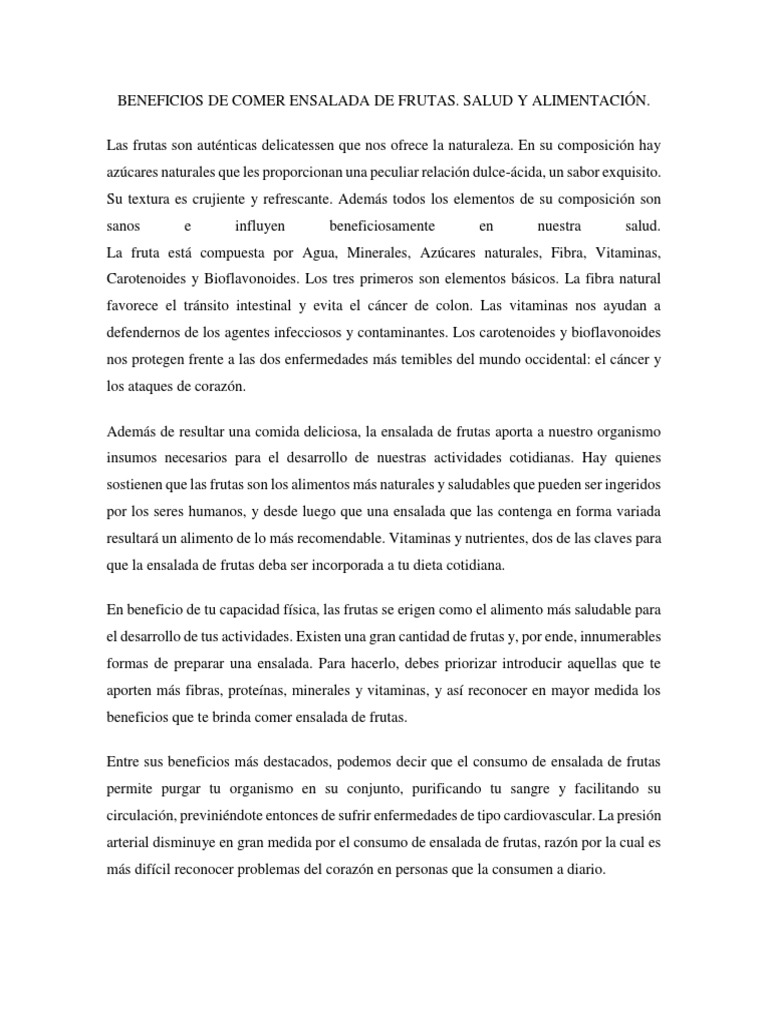 BENEFICIOS DE COMER ENSALADA DE FRUTAS. SALUD Y ALIMENTACIÓN.