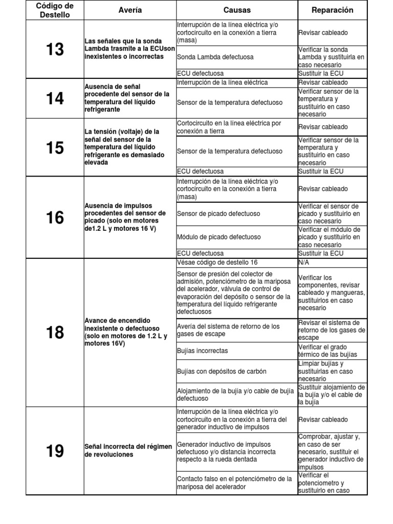 LISTA CÓDIGOS DE FALLA