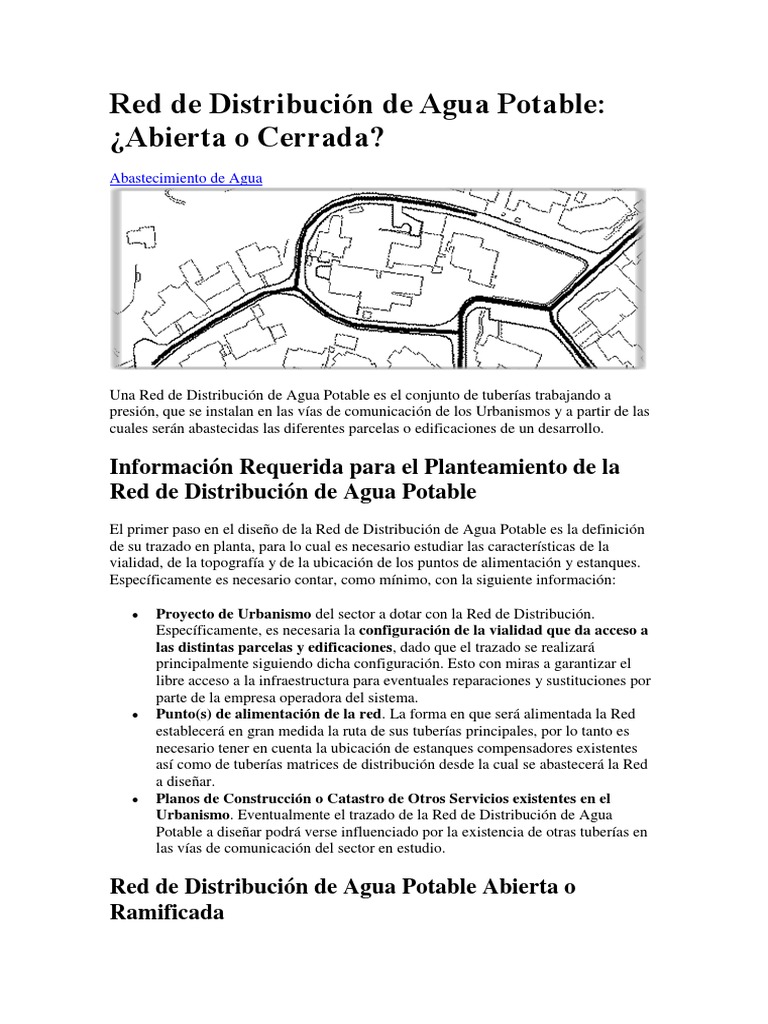 conformación de una Red de Distribución de Agua Potable del Tipo Cerrada, pese a que