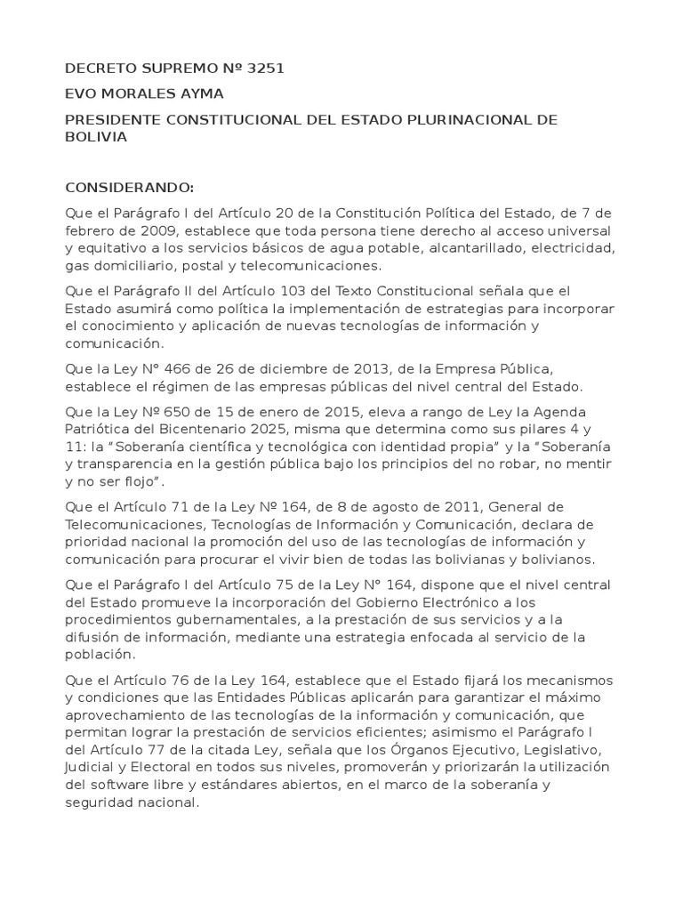 DECRETO SUPREMO Nº 3251