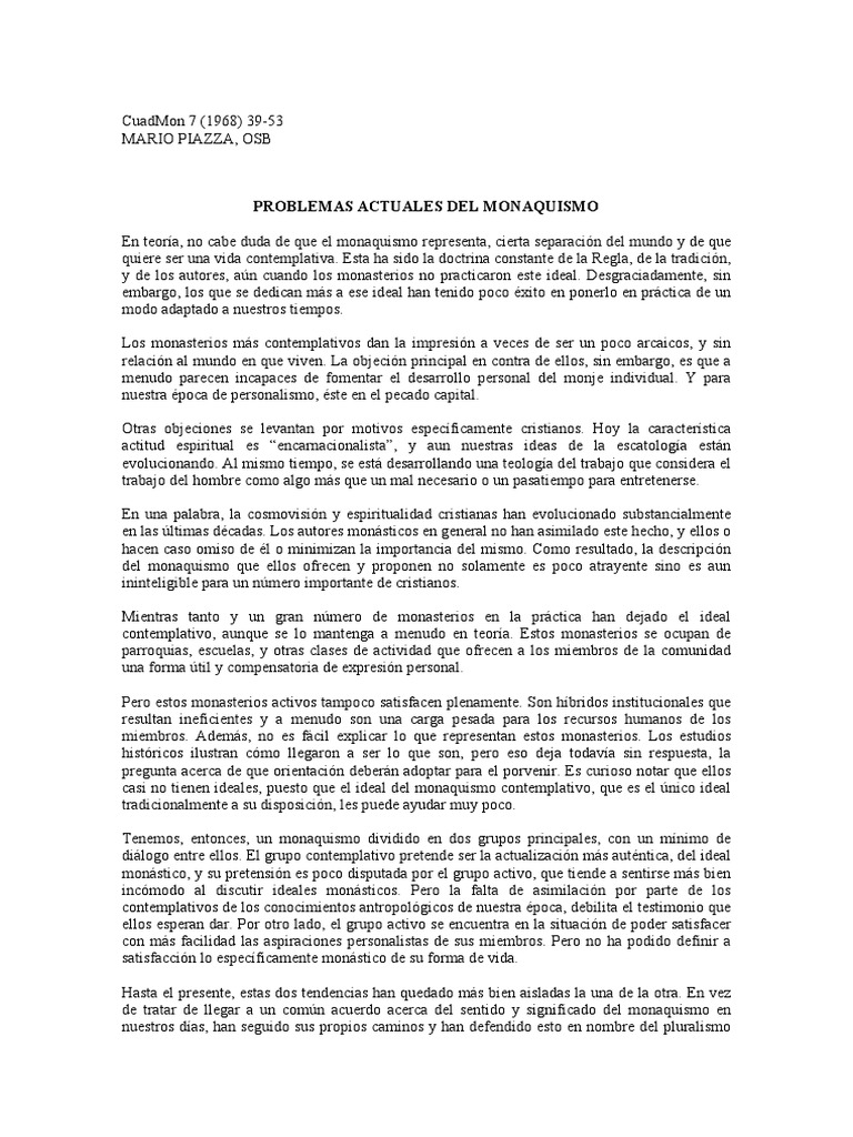 PROBLEMAS ACTUALES DEL MONAQUISMO