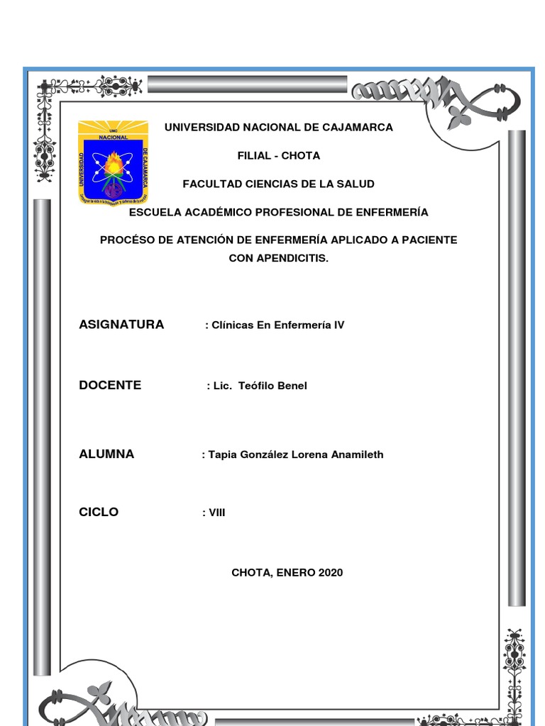 Cadenilla de chota, cama 208- D con diagnostico medico apendicitis