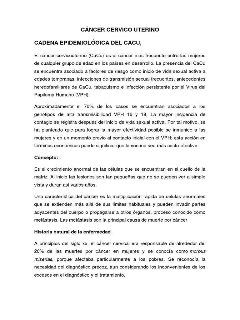 HPV). El factor de riesgo más importante del cáncer de cuello uterino es la