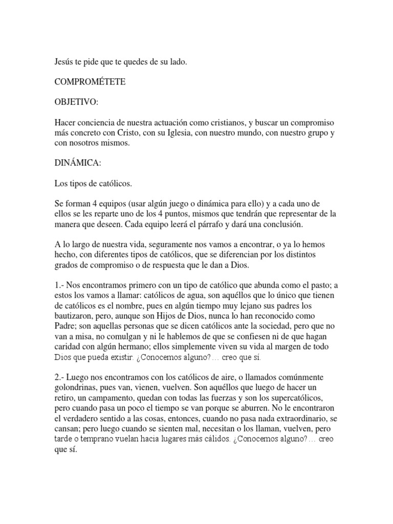 Hacer conciencia de nuestra actuación como cristianos, y buscar un compromiso