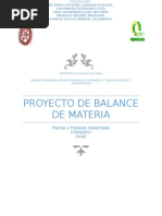 6 Balance de materia en la etapa de mezclado de materia prima e insumos