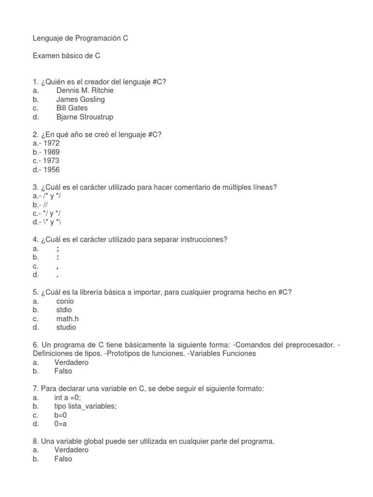Examen básico de C