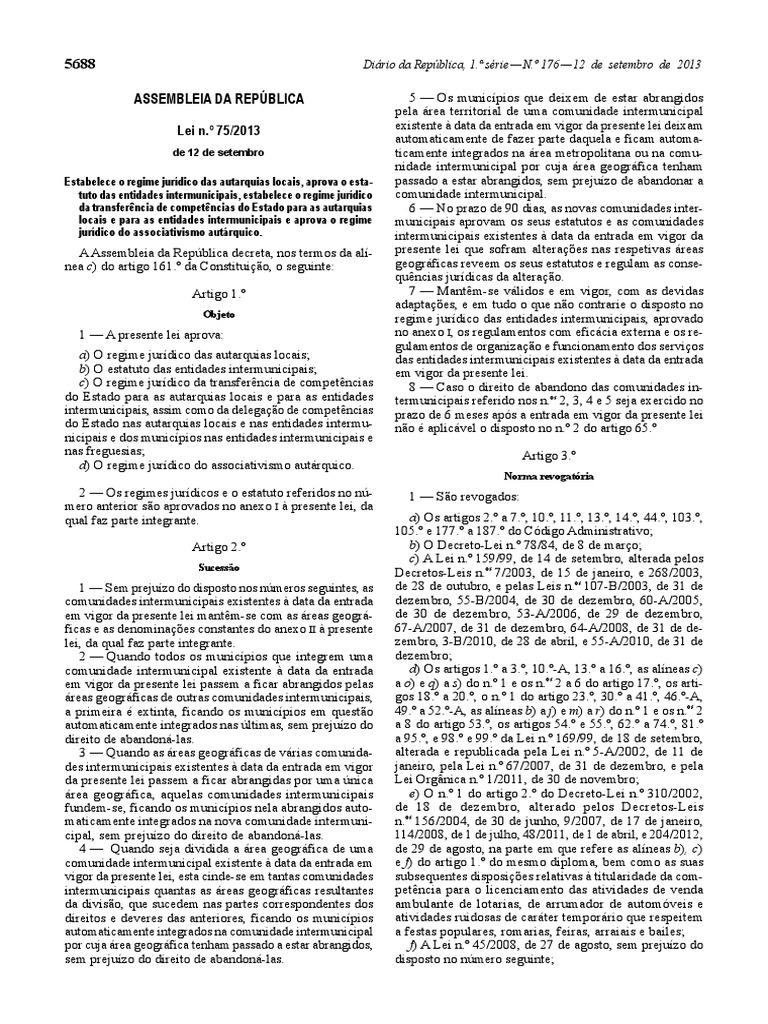 Estabelece o regime jurídico das autarquias locais, aprova o esta- passado a estar abrangidos, sem prejuízo de abandonar a