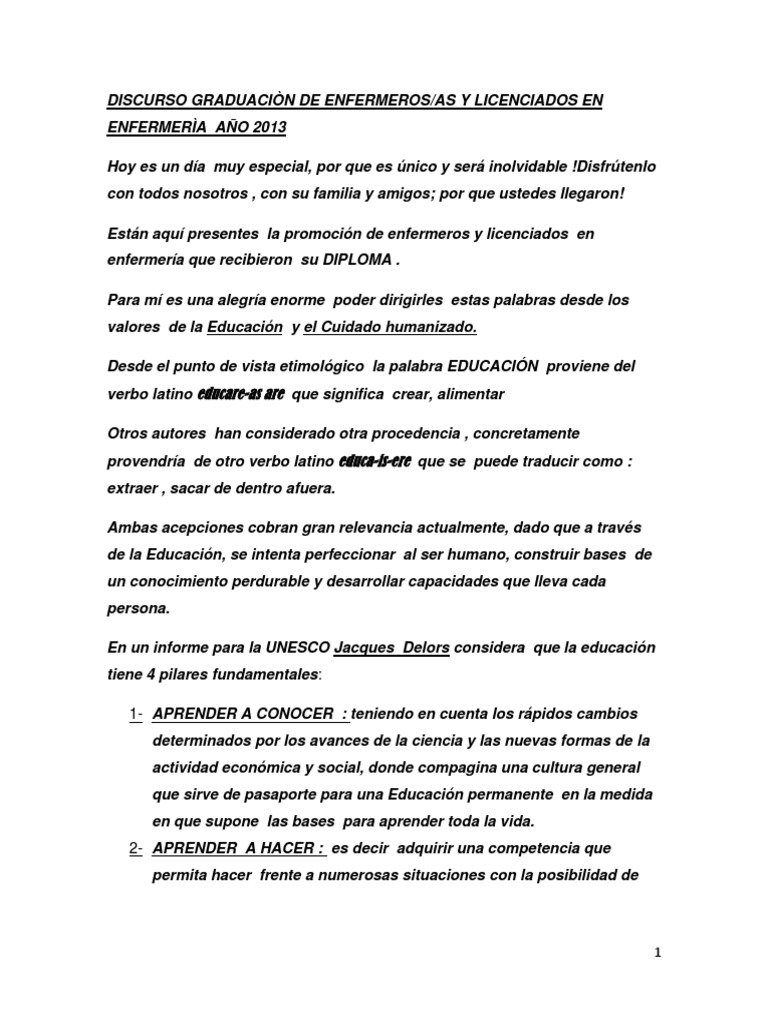 DISCURSO GRADUACIÒN DE ENFERMEROS/AS Y LICENCIADOS EN