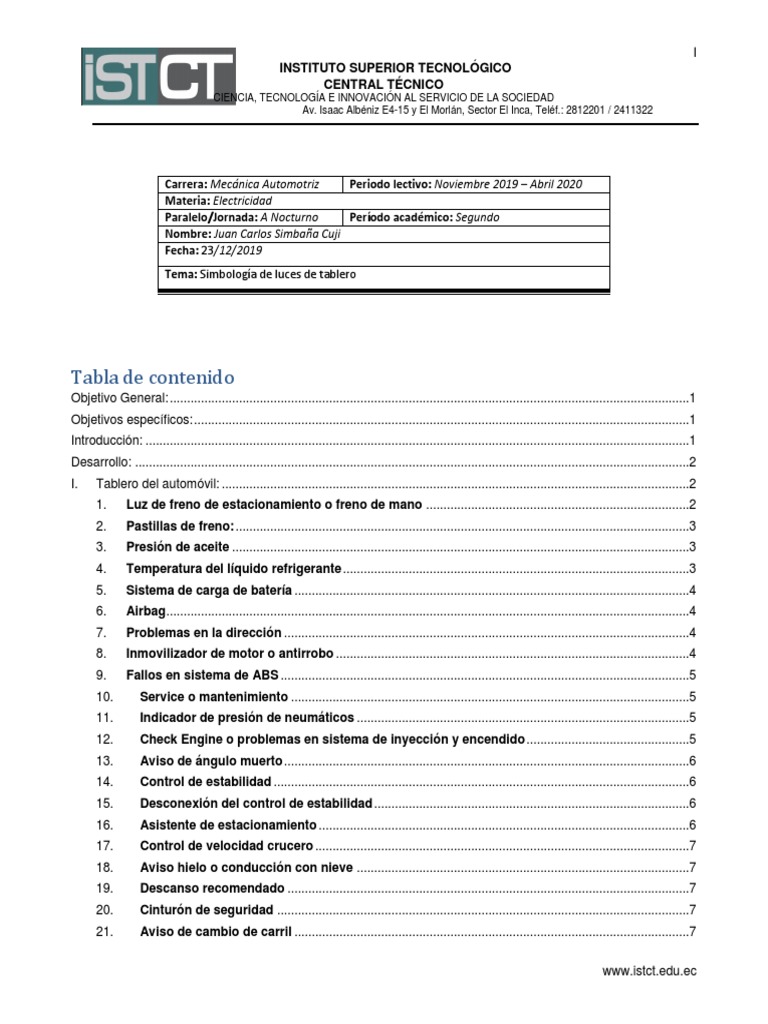 I. Tablero del automóvil: .......................................................................................................................................2