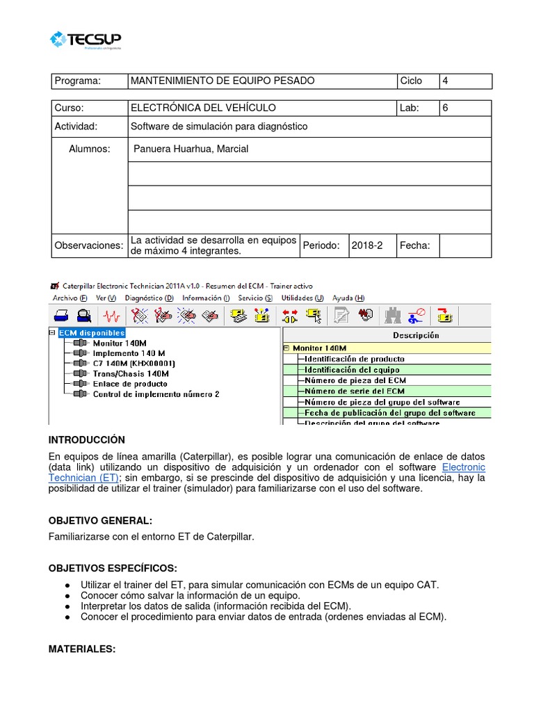 ● Utilizar el trainer del ET, para simular comunicación con ECMs de un equipo CAT.