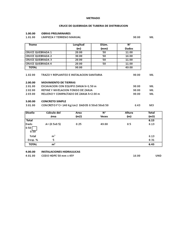 CRUCE DE QUEBRADA DE TUBERIA DE DISTRIBUCION