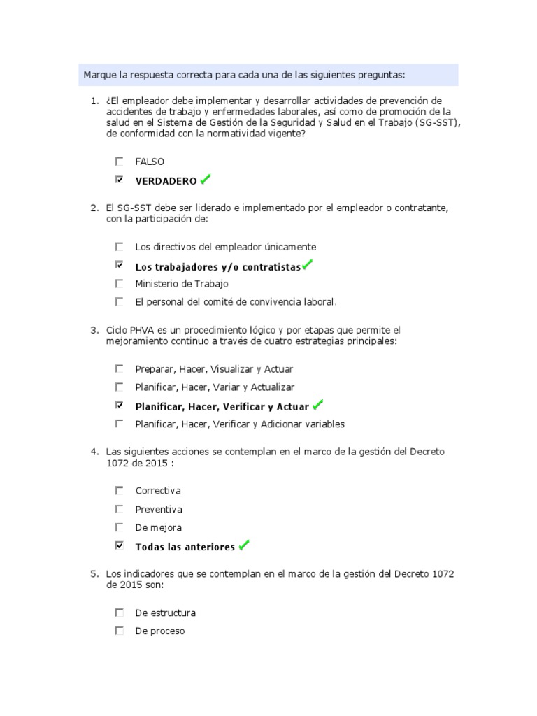 Marque la respuesta correcta para cada una de las siguientes preguntas: