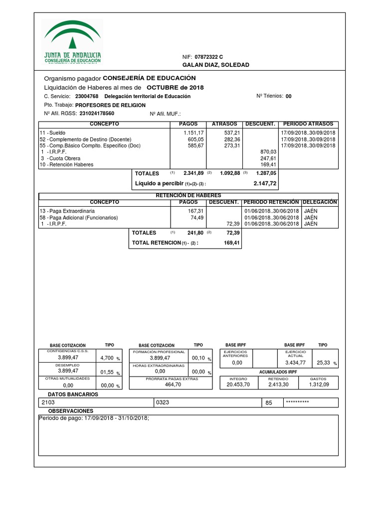 Periodo de pago: 17/09/2018 - 31/10/2018;