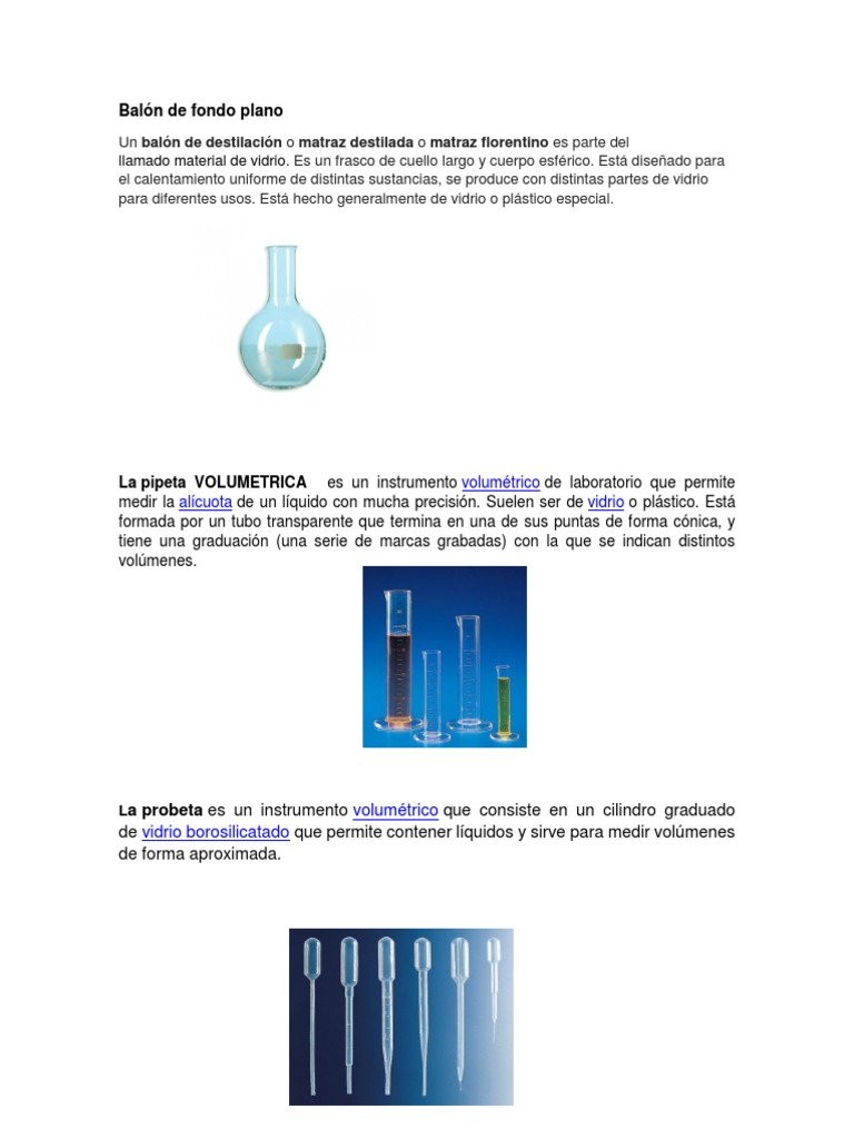 medir la alícuota de un líquido con mucha precisión. Suelen ser de vidrio o plástico. Está
