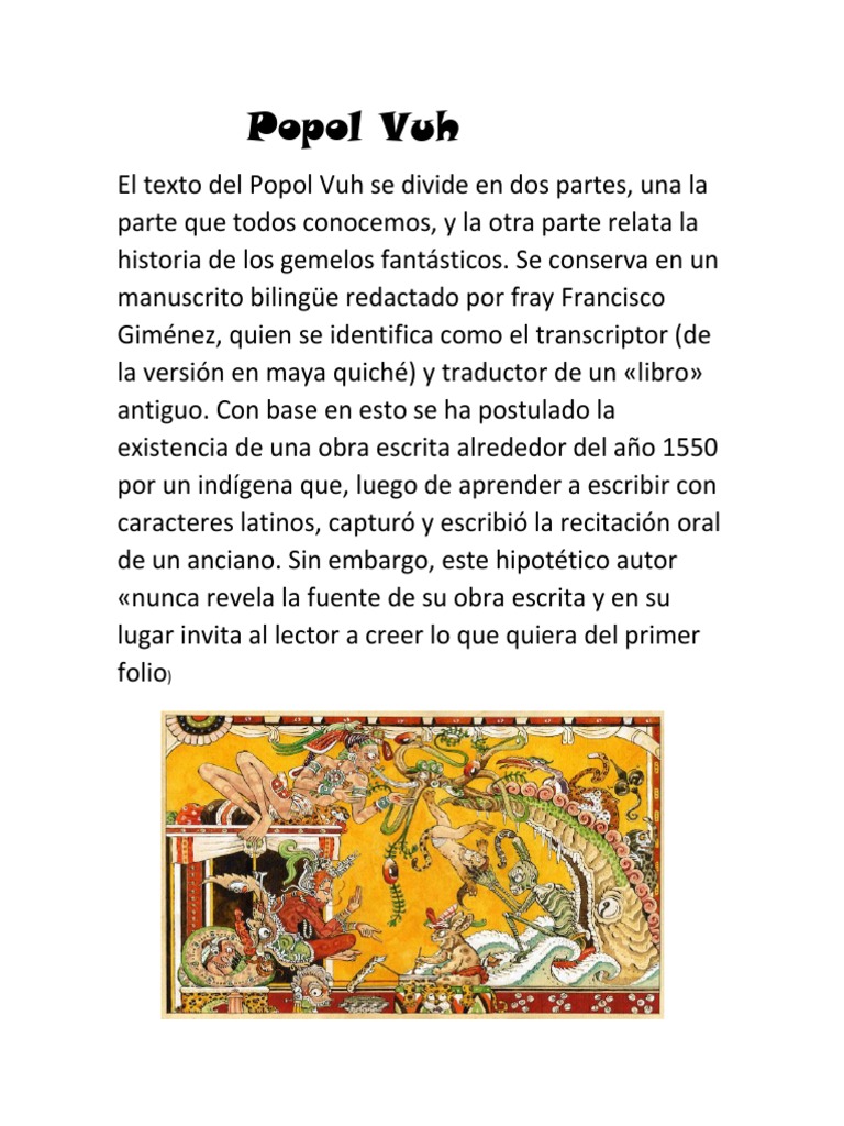 El texto del Popol Vuh se divide en dos partes, una la