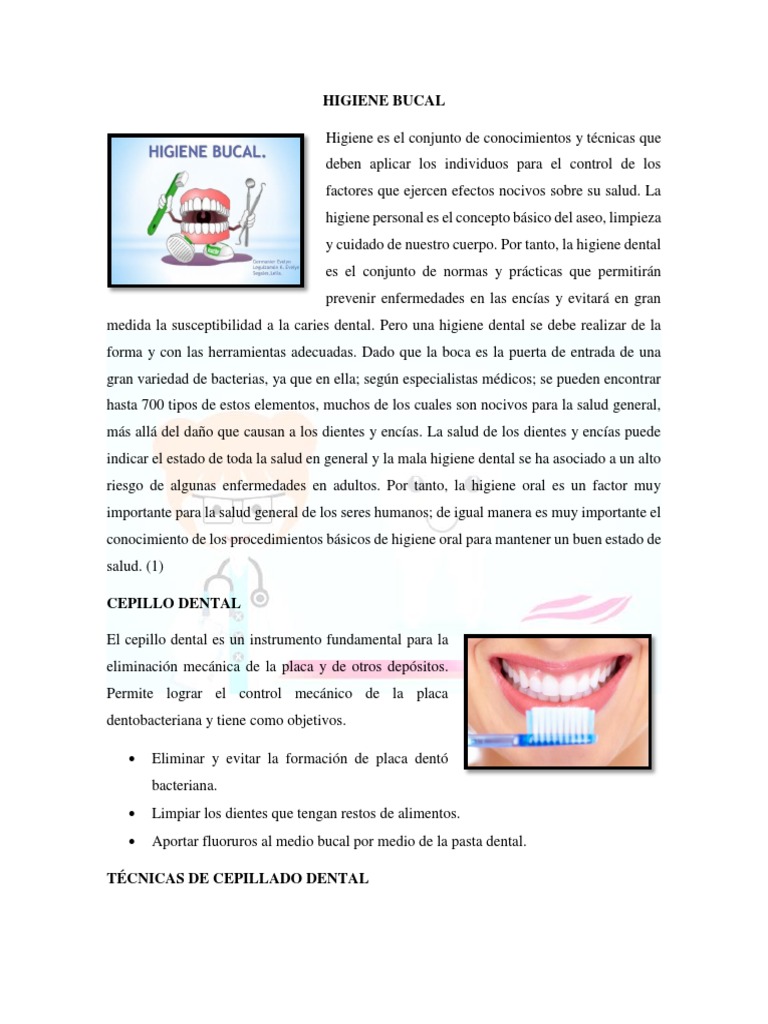 y cuidado de nuestro cuerpo. Por tanto, la higiene dental