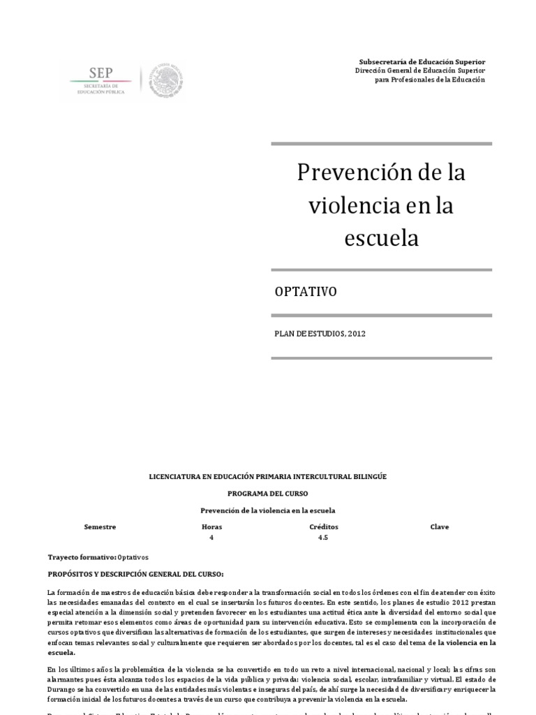 En este contexto surge el diseño del presente curso optativo Prevención de la violencia en la escuela, considerando que este es un tema de