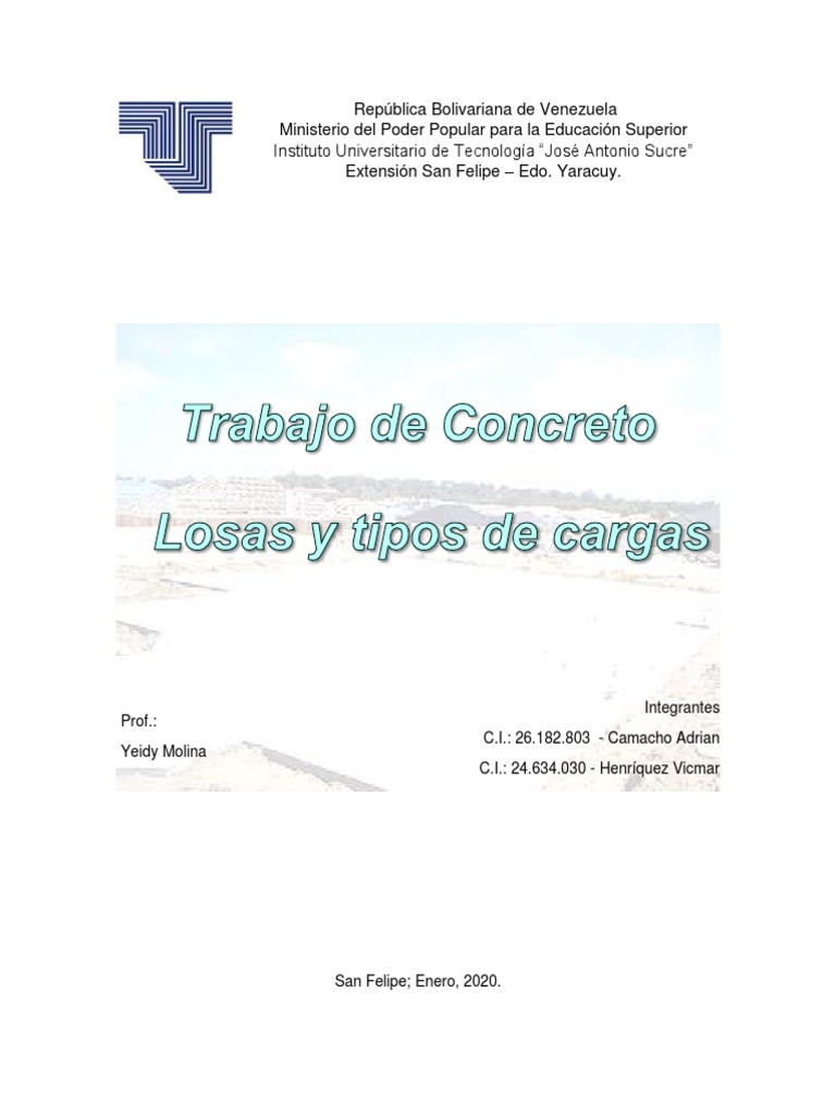 Las cargas es el peso que recibe la estructura, la fuerza ejercida por la losa