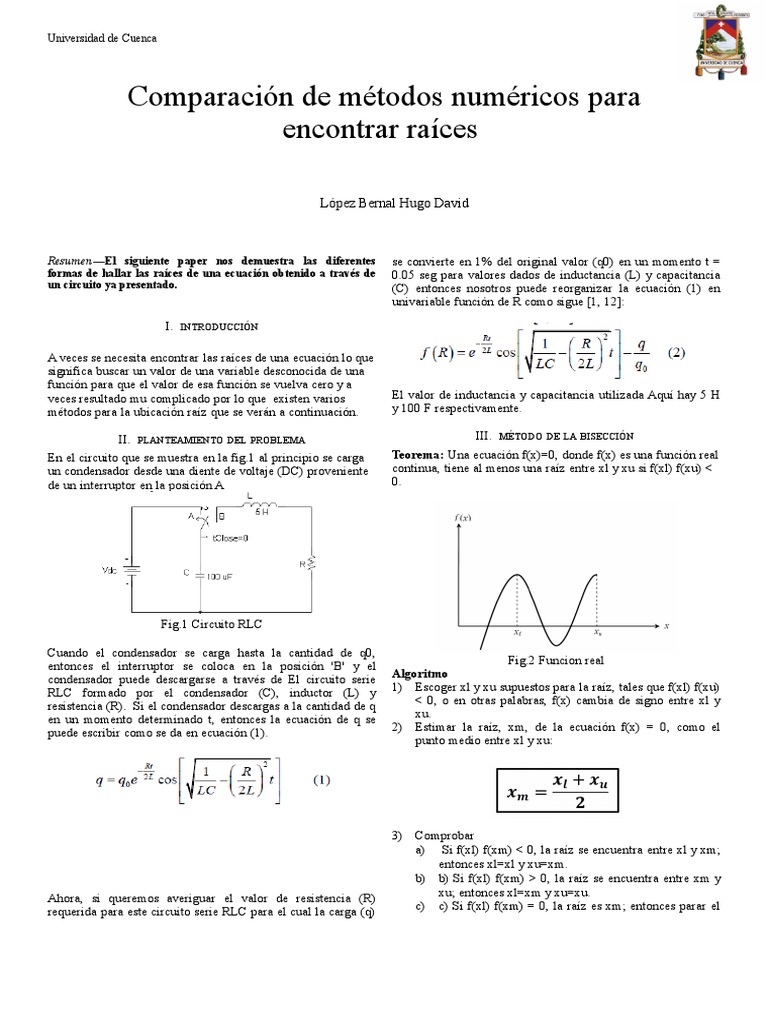requerida para este circuito serie RLC para el cual la carga (q) c) c) Si f(xl) f(xm) = 0, la raíz es xm; entonces parar el