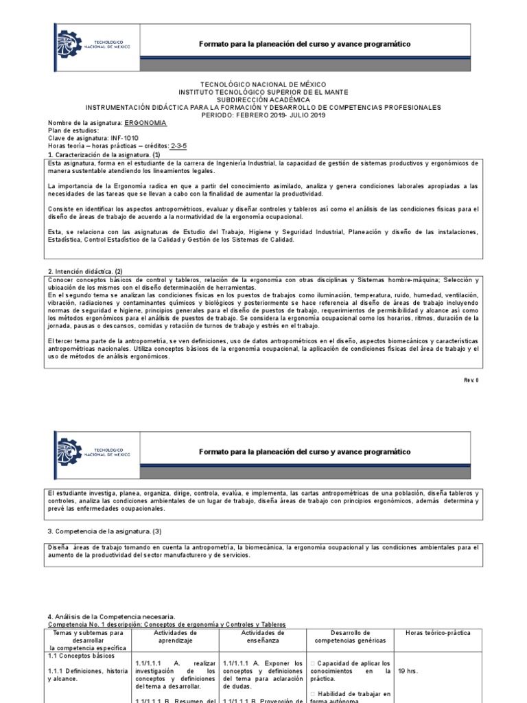 Formato para la planeación del curso y avance programático