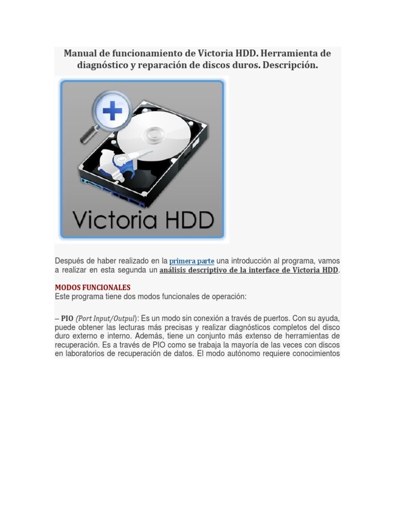a realizar en esta segunda un análisis descriptivo de la interface de Victoria HDD.