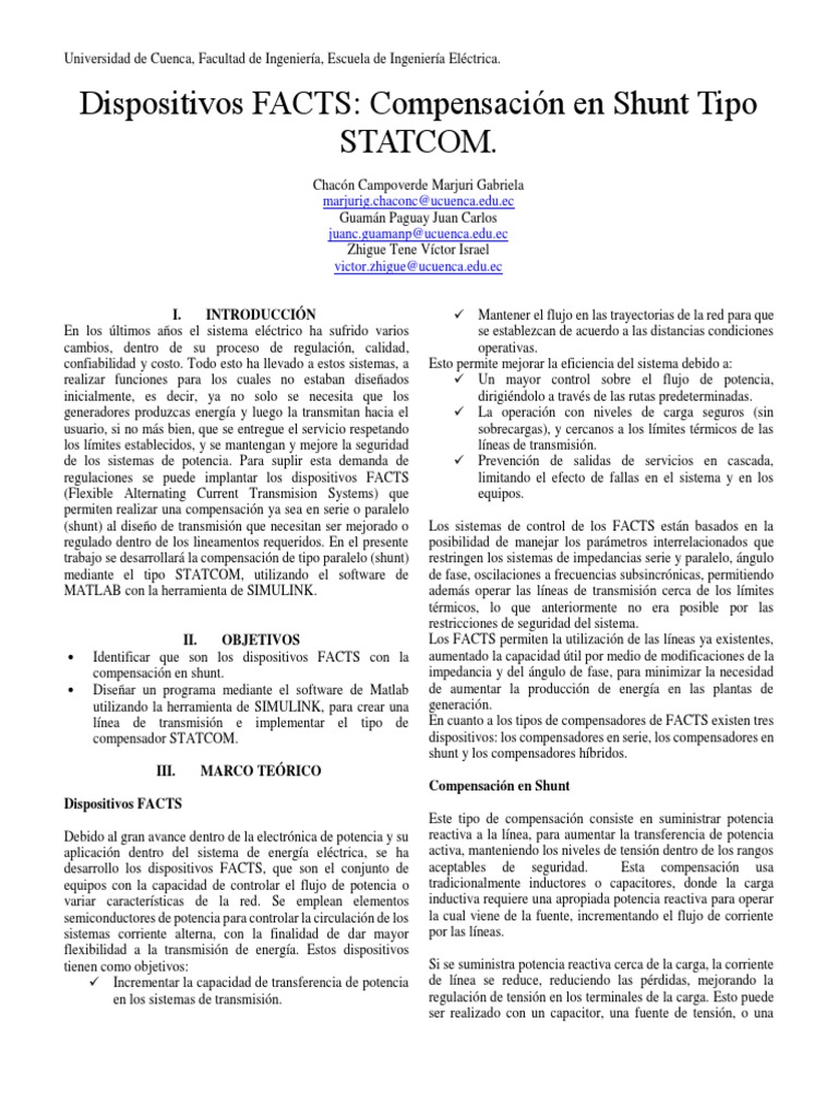 desarrollo los dispositivos FACTS, que son el conjunto de aceptables de seguridad. Esta compensación usa