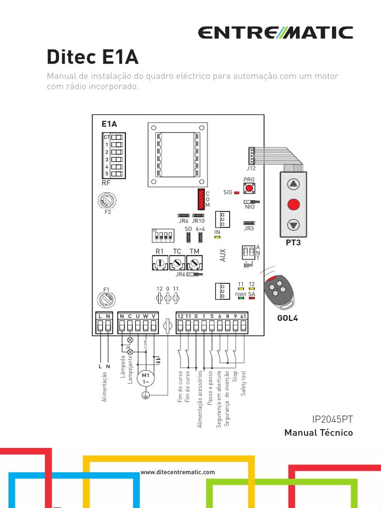 Saída 1 motor 230 V~ 5A max 120 V~ 6,3A max
