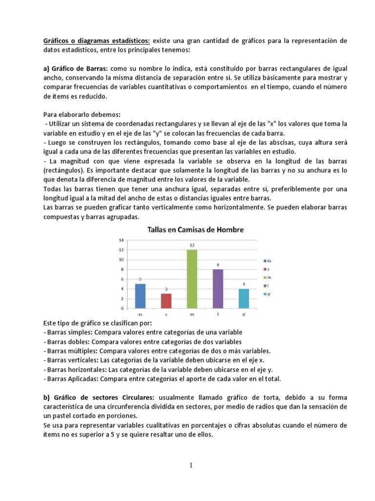 Gráficos o diagramas estadísticos: existe una gran cantidad de gráficos para la representación de