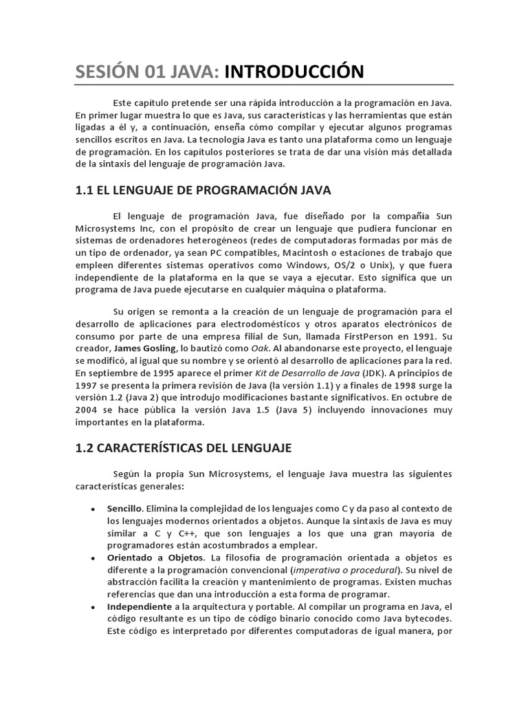 En primer lugar muestra lo que es Java, sus características y las herramientas que están