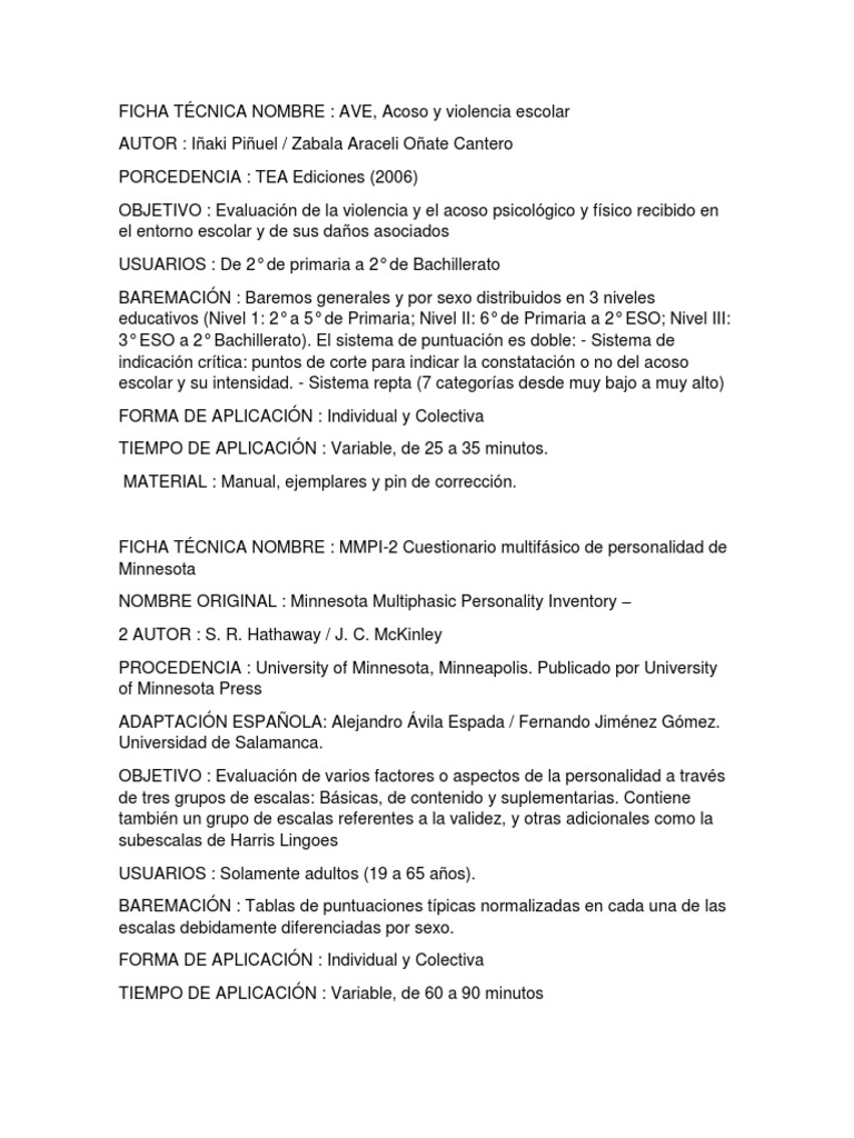 Aplicación: Individual o colectiva. Tiempo: Variable, entre 35 y 50 minutos. Edad: