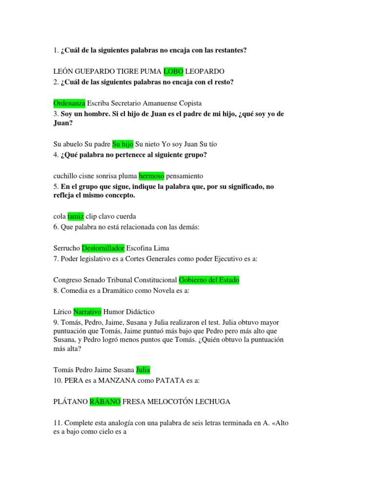 11. Complete esta analogía con una palabra de seis letras terminada en A. «Alto