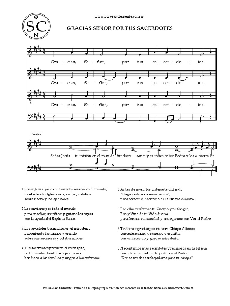 Gra ‐ cias, Se ‐ ñor, por tus sa ‐ cer ‐ do ‐ tes.