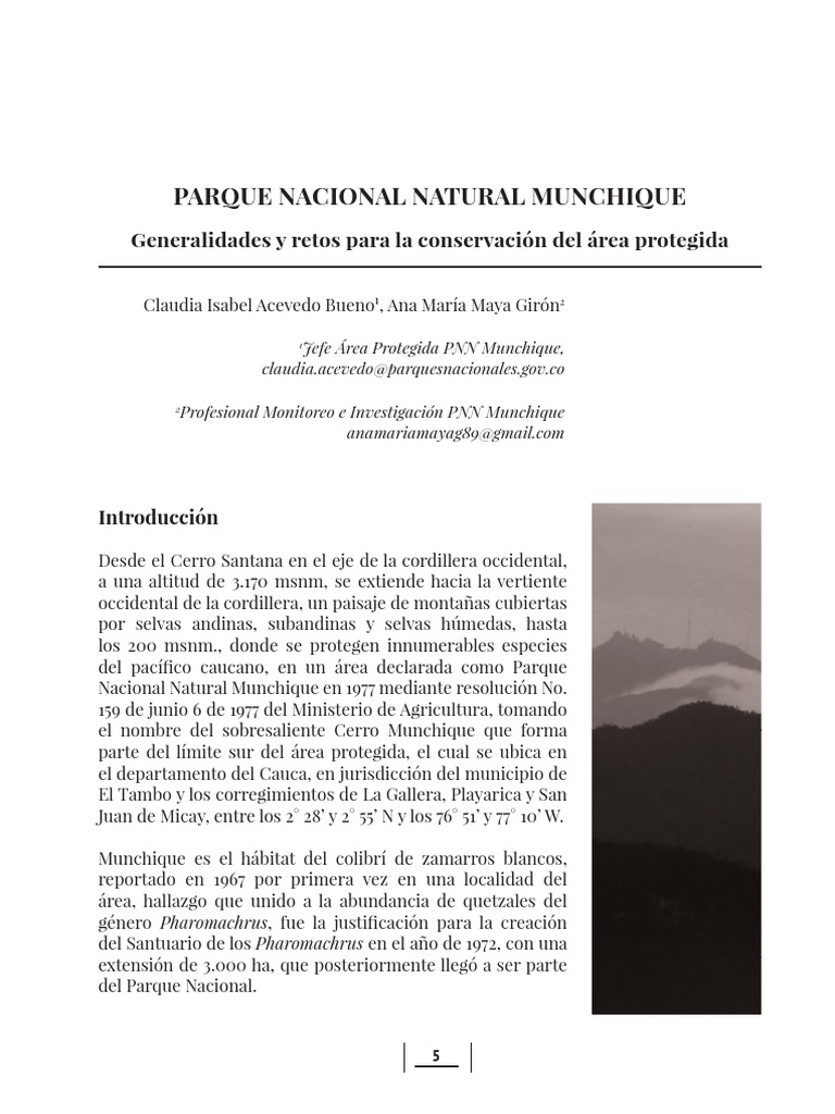 Manejo del Parque Nacional Natural Munchique, Bogotá D.