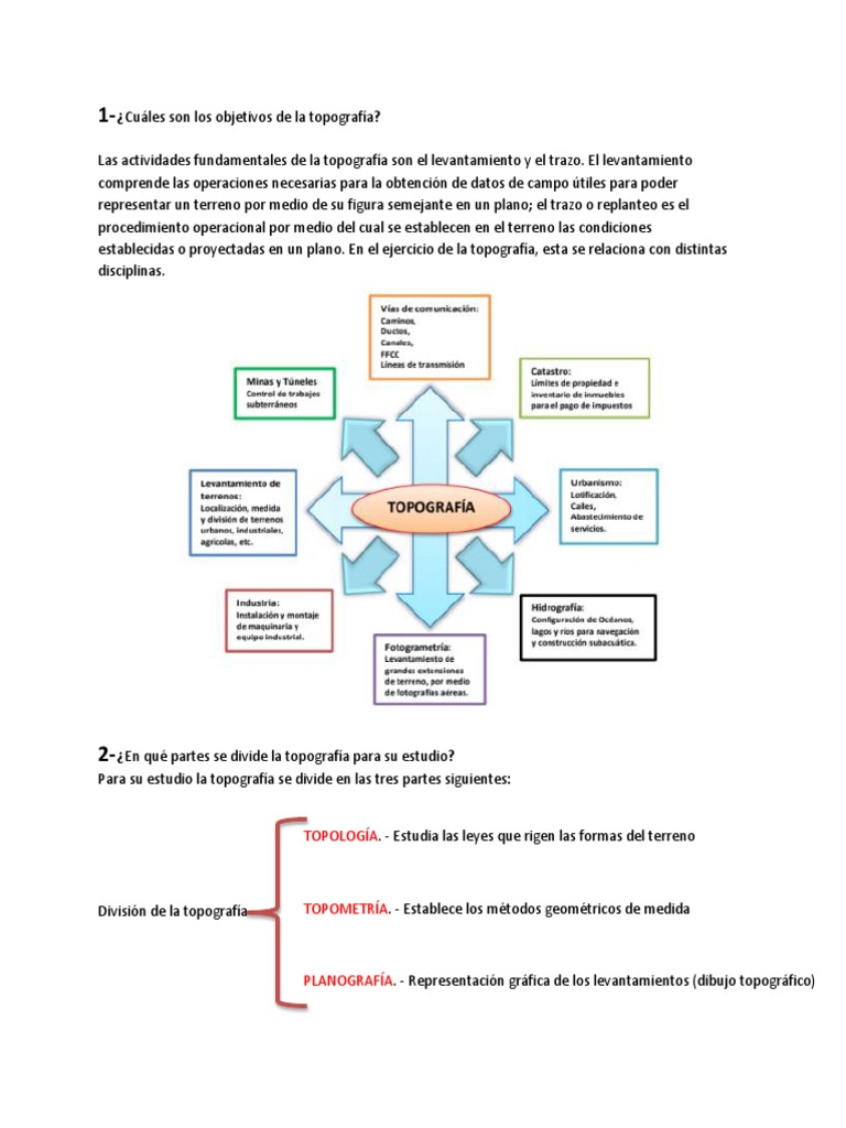 Para su estudio la topografía se divide en las tres partes siguientes: