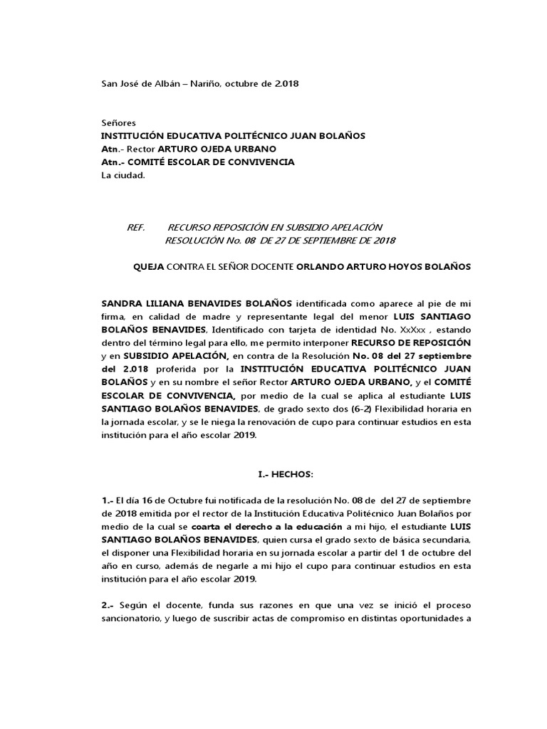 de 2018 emitida por el rector de la Institución Educativa Politécnico Juan Bolaños por
