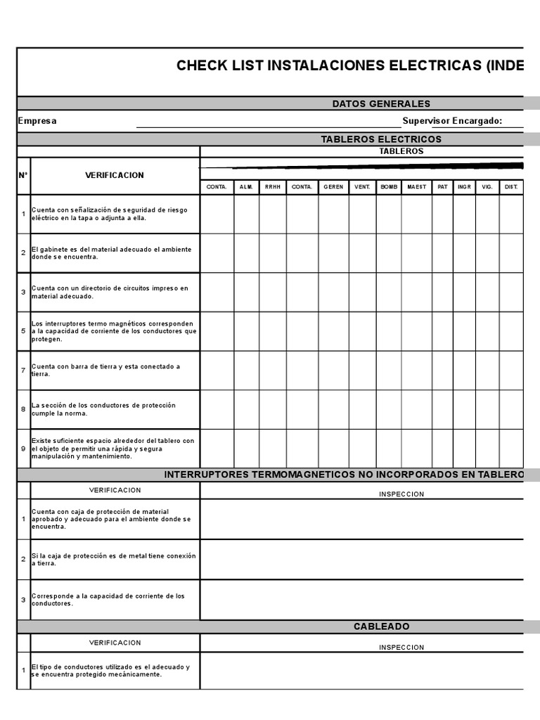 CHECK LIST INSTALACIONES ELECTRICAS (INDECI