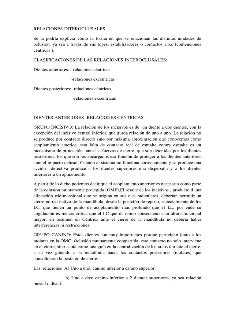 CLASIFICACIONES DE LAS RELACIONES INTEROCLUSALES: