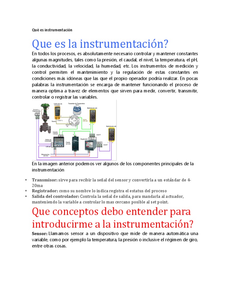 palabras la instrumentación se encarga de mantener funcionando el proceso de
