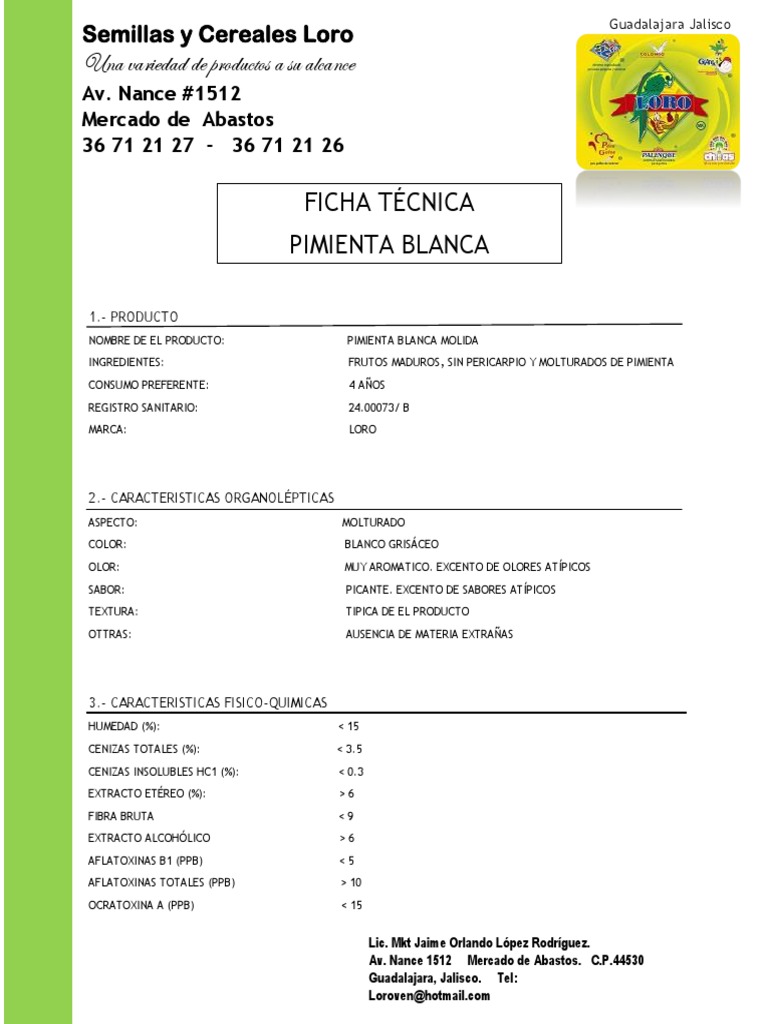 NOMBRE DE EL PRODUCTO: PIMIENTA BLANCA MOLIDA