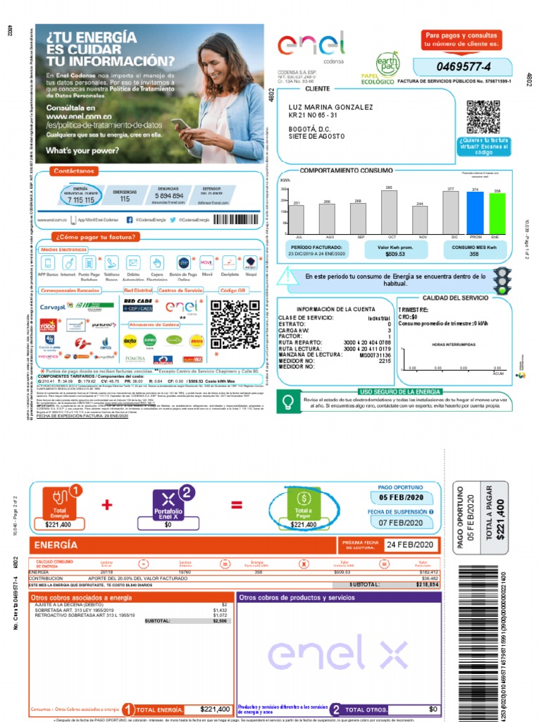El prestador del servicio de comercialización y distribución de energía eléctrica y de productos y servicios de valor agregado es CODENSA S.A. ESP. NIT. 830.037.248-0. Entidad vigilada por la Superintendencia de Servicio Públicos Domiciliarios.