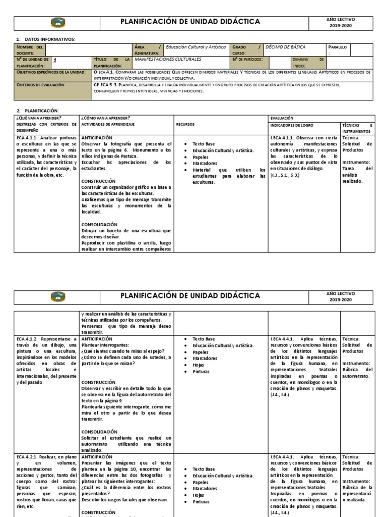 CE.ECA.4.1. RECONOCE ARTISTAS Y OBRAS DEL ECUADOR Y DEL ÁMBITO INTERNACIONAL, Y UTILIZA SUS CONOCIMIENTOS Y HABILIDADES
